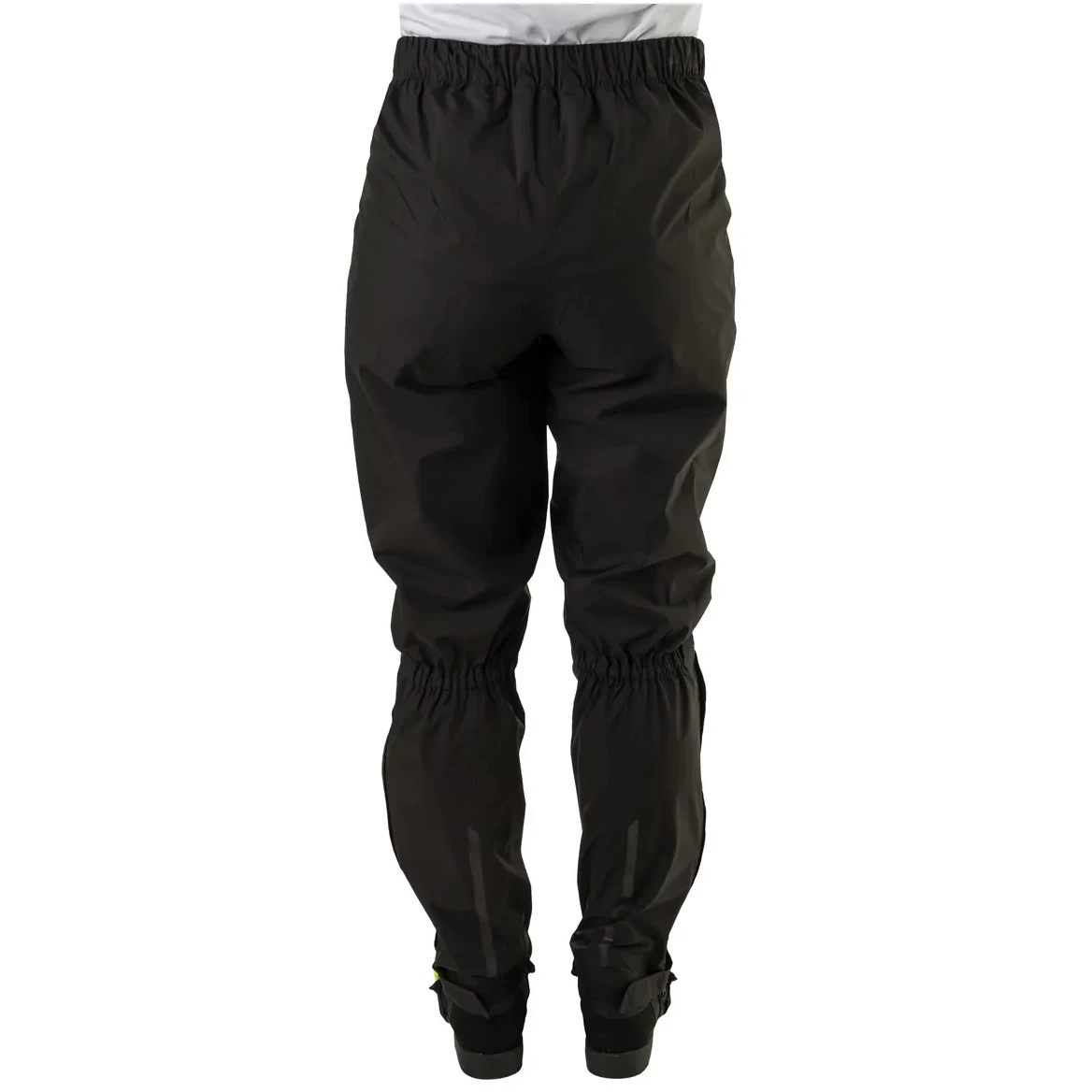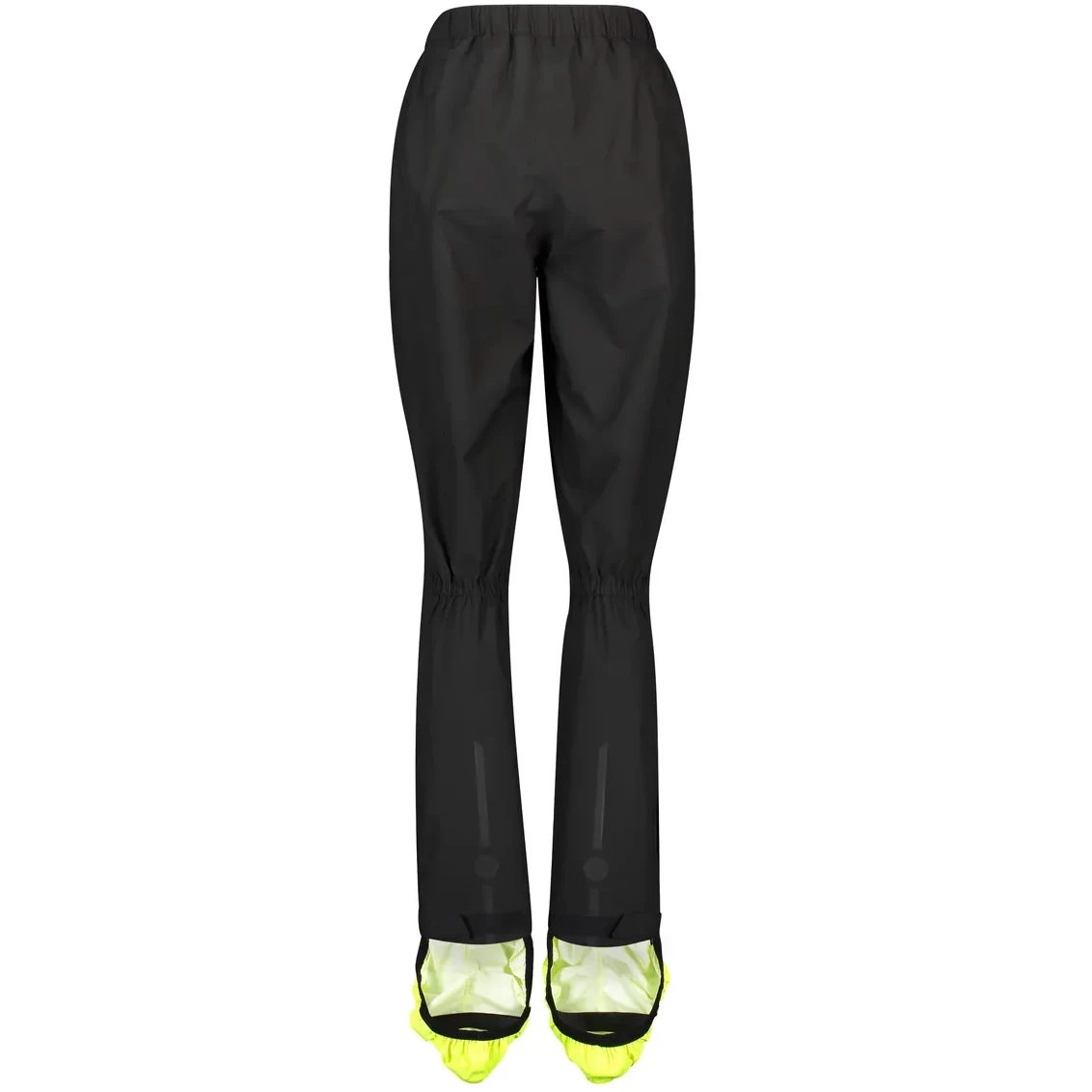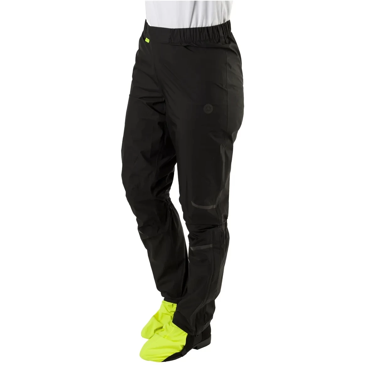 With the increasing advent of e-bikes and speed pedelecs, the demand for special rainwear that protects against heavy rain even at high speeds on the bike is also growing. The Commuter collection has been developed precisely for this purpose. The Compact Hi-Vis rain trousers for commuters are a very light rain protection that can be folded and stored in a handy format. Thanks to the neon yellow colour, you are particularly visible in traffic at dusk. An elastic waistband and knee pads ensure a perfect fit and freedom of movement on the bike. The lower legs of the trousers have a 50-centimetre-long zip, so that you can pull the trousers over your shoes. Behind the zipper there is an integrated rain protection strip to prevent water from entering through the zipper. The leg ends have a striking neon yellow protective cover that fits over any shoe. These functional overshoes keep your feet clean and dry. The 2.5-layer rain trousers are breathable, windproof and waterproof thanks to the specially manufactured AGU Poray 10,000 membrane. All items in the Compact series are lightweight and have an integrated storage pocket, which is also equipped with a Poray 10,000 membrane. The bag has a fastening that fits to the saddle of the bicycle. With these trousers the storage pocket is integrated into the back pocket. For better visibility in road traffic, it has been provided with reflective elements.