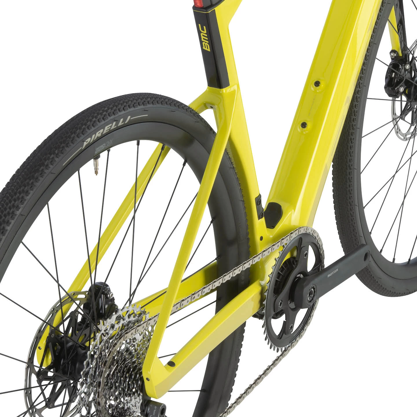 Internal cable routing, a premium carbon D-Shape seatpost, wide tire clearance and advanced ICS MTT x Redshift Suspension stem provide comfort over the rough stuff. Go your own way with Roadmachine 01 AMP X TWO arriving with the SRAM Rival XPLR eTap AXS 12-speed groupset, 35mm Pirelli Cinturato Gravel H tires and the powerful TQ-HPR50 drive unit.