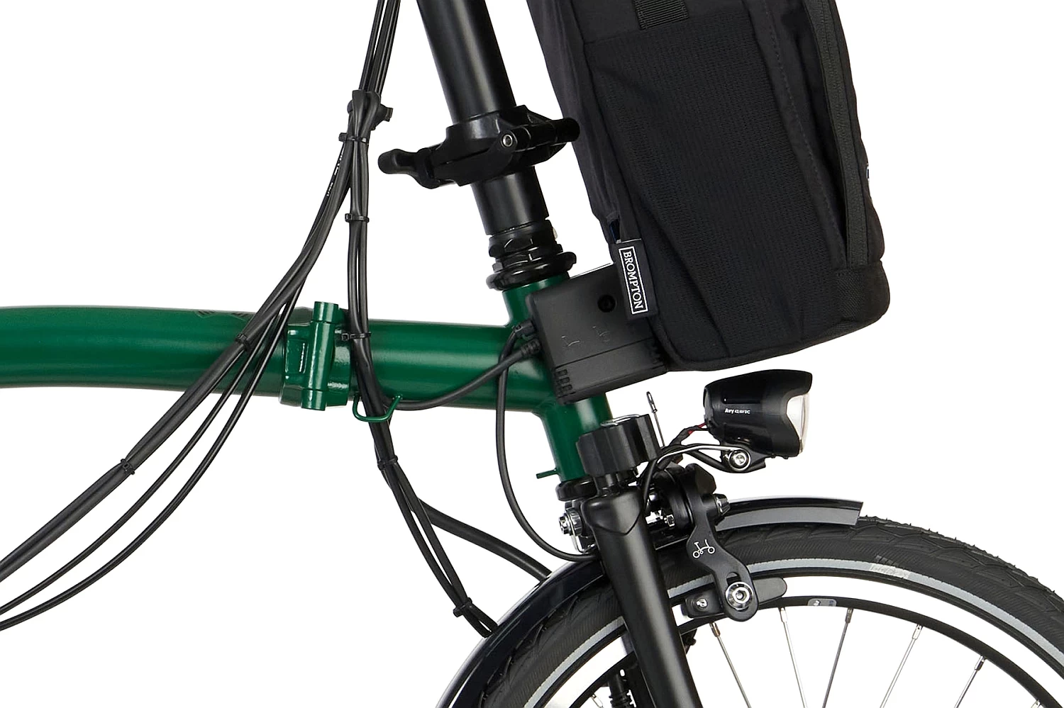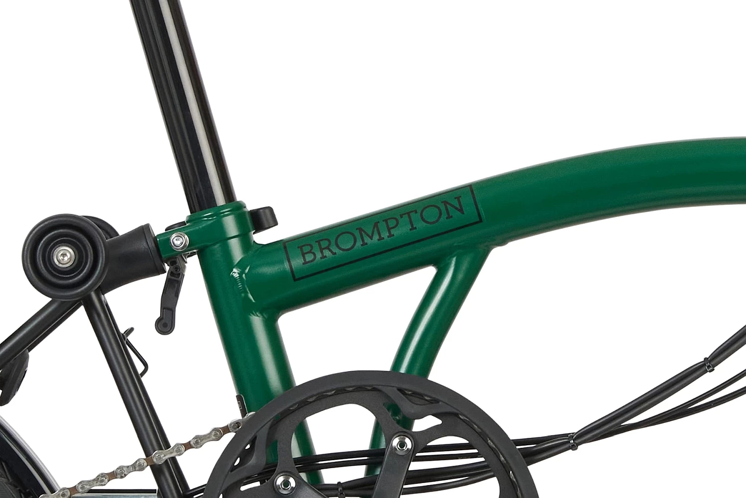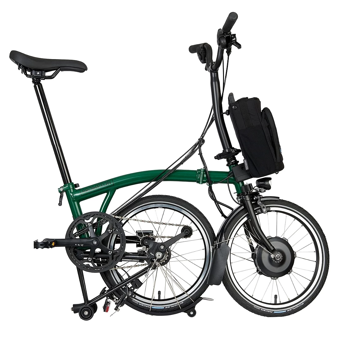 Brompton Electric C Line Explore – 6-Speed – Mid Bar – Standard Seatpost – 16″ Electric Folding Bike – 2023 – Racing Green