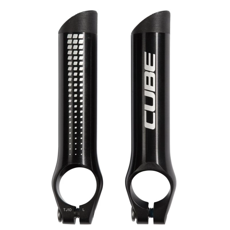 These super light CNC machined aluminium bar ends include a thumb groove in the plastic cap for a secure grip. They are painted and the print features a CUBE logo on two sides. The lock-on system guarantees a slip-free hold on the handlebar.