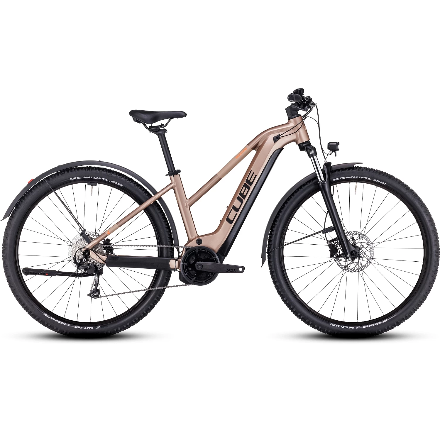 CUBE REACTION HYBRID Performance 625 Allroad – Women Electric Mountain Bike – 2023 – Metallicbrown / Orange