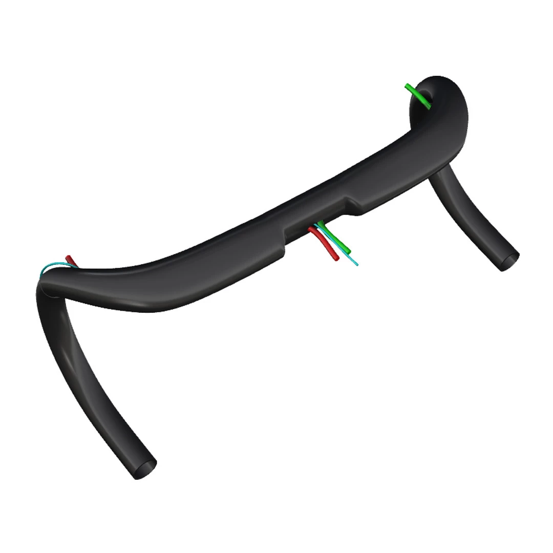 The DCR (Deda Internal Cable Routing) version of the Deda SuperZero allows the complete integration of the cables in the handlebar. The Superzero carbon handlebar fits perfectly with the modern philosophy of racing bikes that are not only light and stiff, but also aerodynamic. This technical approach is reflected in the aeroprofile and the cross-section of the handlebar, designed to minimize drag and provide an ergonomic grip for any riding style.