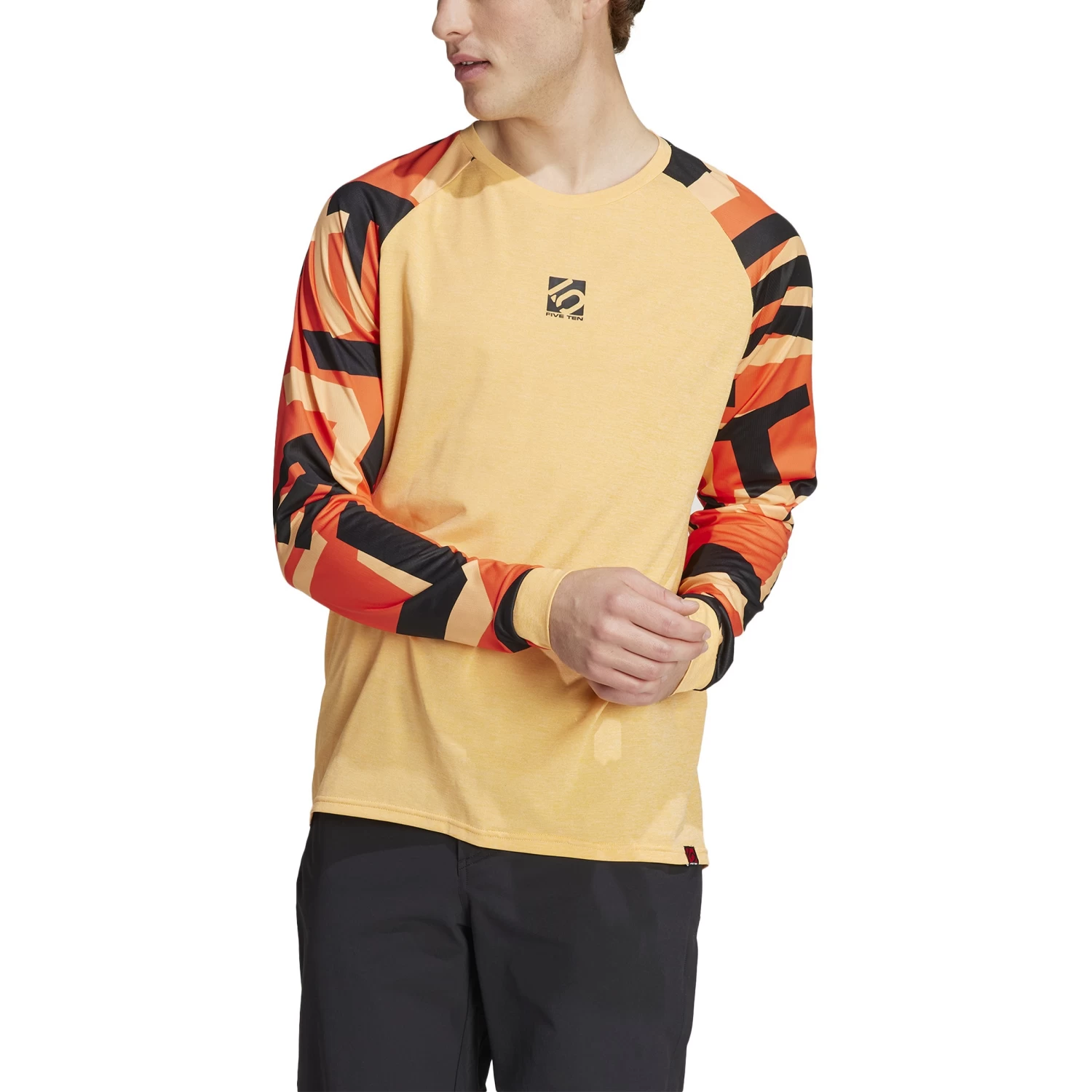 Mountain biking is all about having the right gear. This lightweight adidas longsleeve protects you from sun, dirt and grime. The Five Ten print reflects your energy. And the moisture-absorbing AEROREADY technology guarantees you a dry feeling.