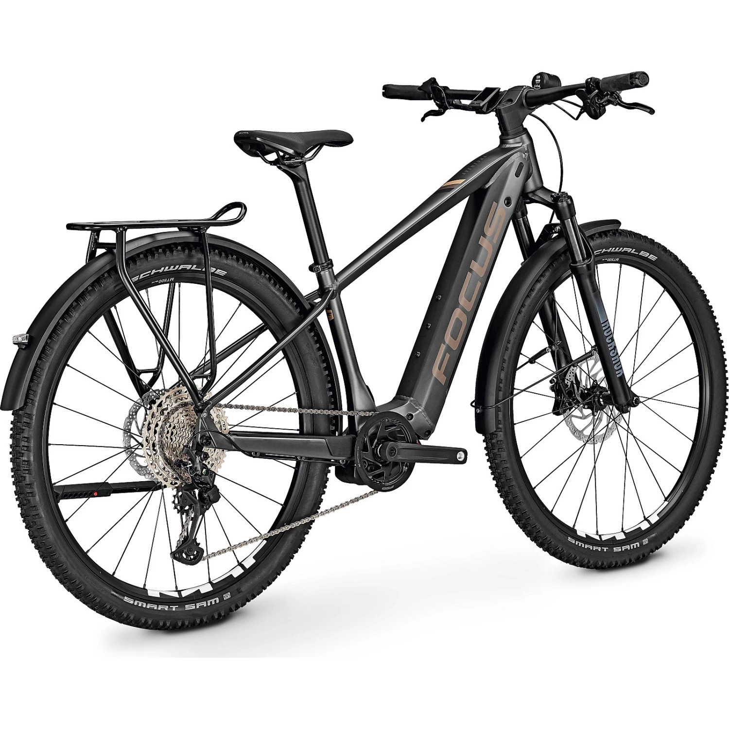 Regardless of whether your journey lasts several days or you simply need to transport a lot of belongings: with its pannier rack, mudguards, stand, lock mount and light, the AVENTURA² is equally well-prepared for bikepacking trips and transporting heavy loads across the city. On top, the FOCUS AVENTURA² 6.9 is approved for most trailers and for a system weight (rider plus gear and bike) of 150 kg.