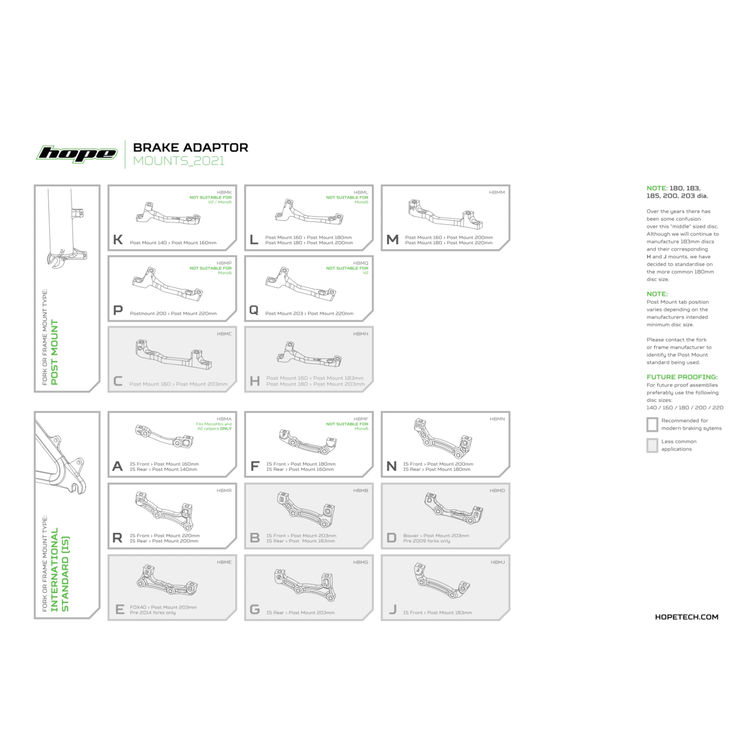Hope Adaptor to install Hope postmount brakes on IS2000 frames or forks. For front brake with 160 mm brake disc or rear brake with 140 mm brake disc.