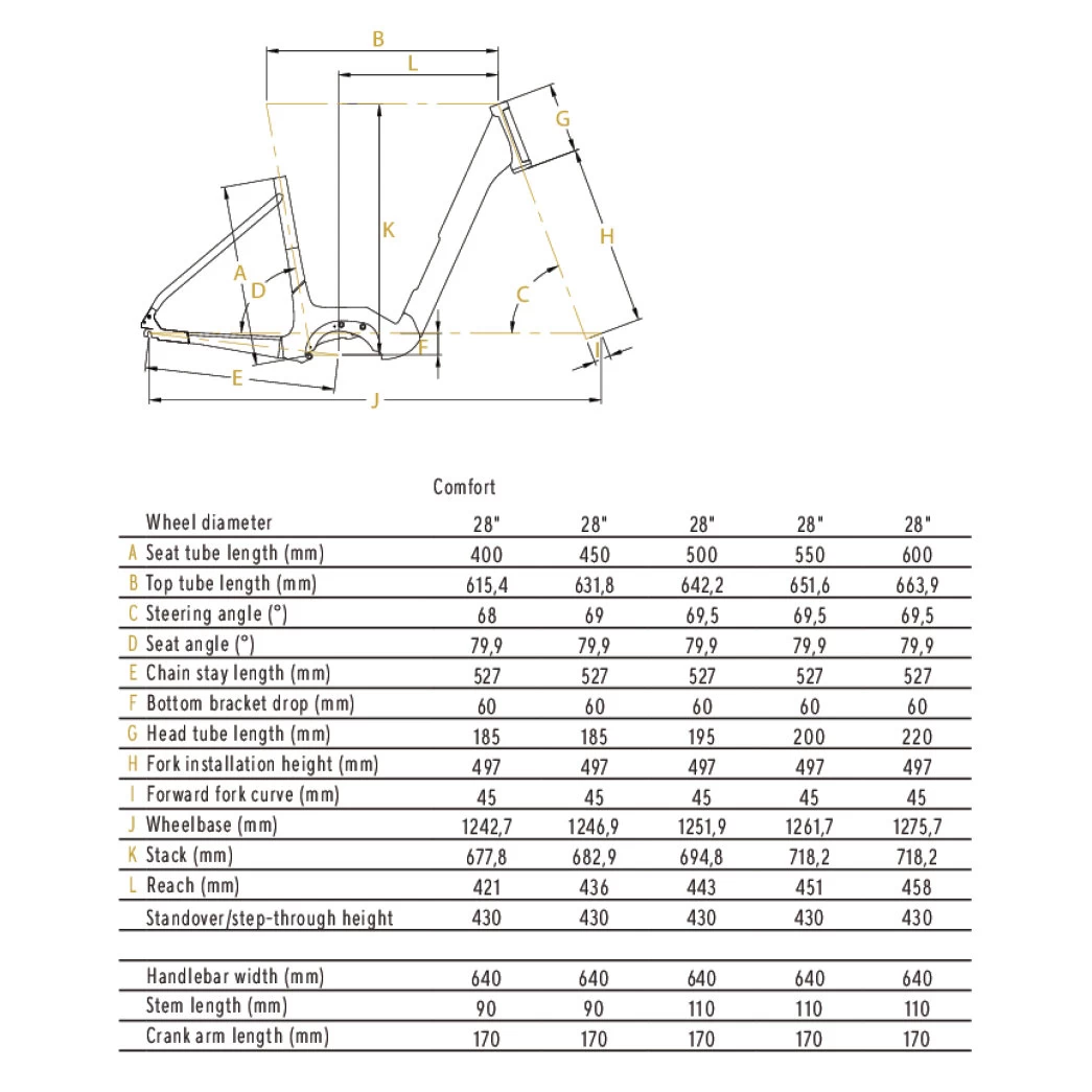 A curved handlebar supports agile riding and steering, positioning you in an upright and comfortable riding position with a good overview, delivering little pressure on the palms. This ensures a high center of gravity and a comfortable posture on long tours.