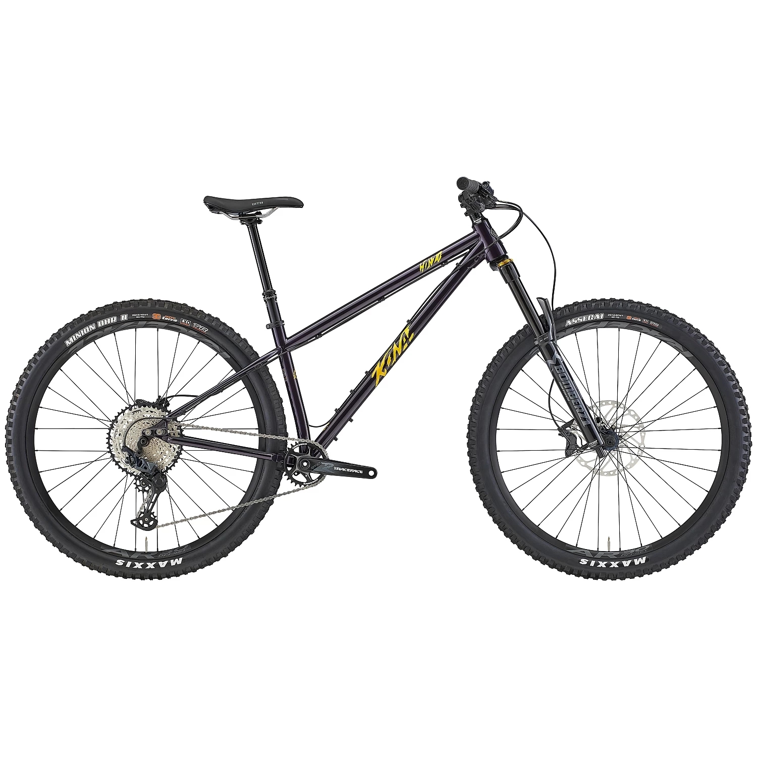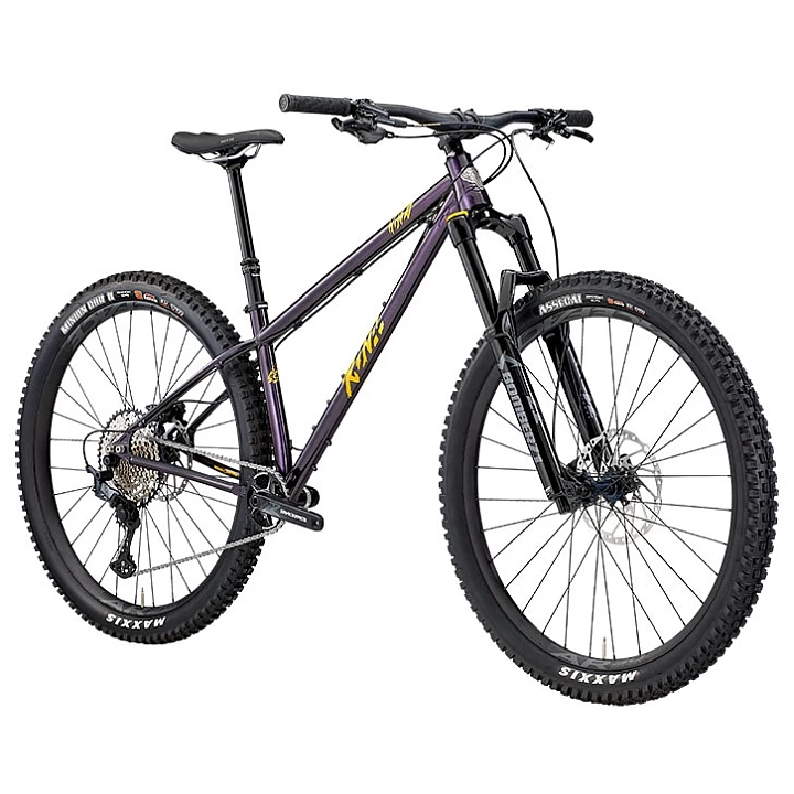 A steel frame holds a Marzocchi Bomber Z1 fork with 150mm of travel. It’s got strong 4-piston brakes, grippy Maxxis tyres and a headtube badge that will scare your children at night.Â
