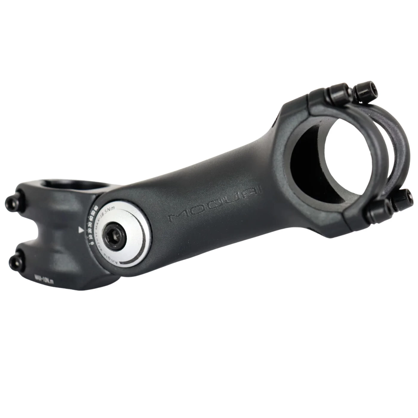 This 3D forged stem from Moquai is made of aluminum and offers an adjustable inclination of 0 to 60 °. Visually, the stem convinces with a matte black anodized finish.