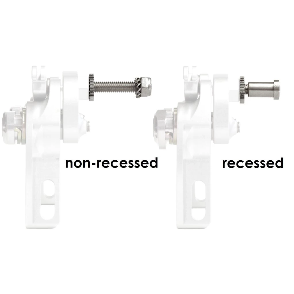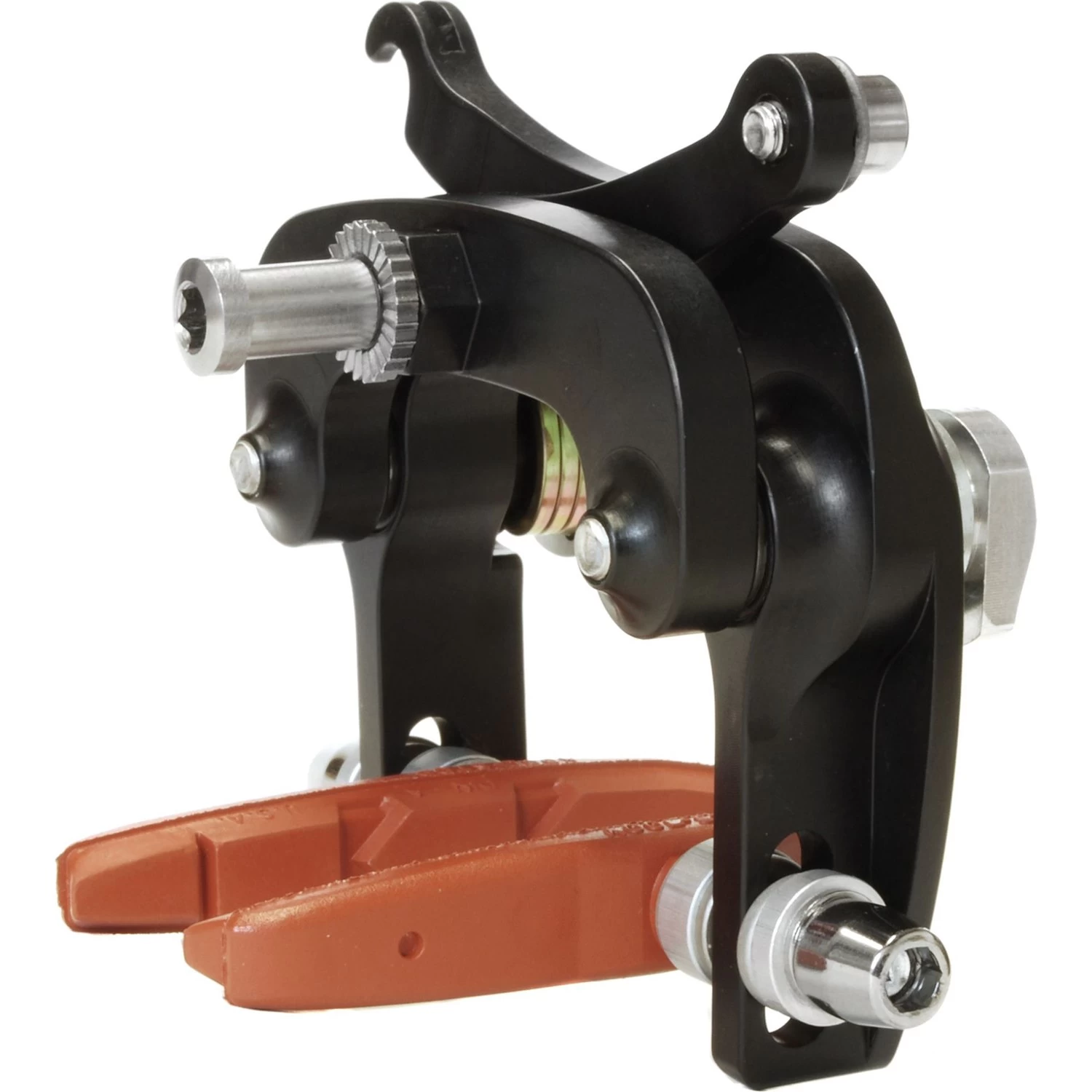 This Racer version is designed to mount directly to the frame via center pull brake bosses. Contrary to the Braze-On version an additional bridge spans the pivots and mounts to the frame with a bolt. The option is given for a shorter recessed bolt to work with modern frames, or a longer non-recessed bolt that works with older frames.