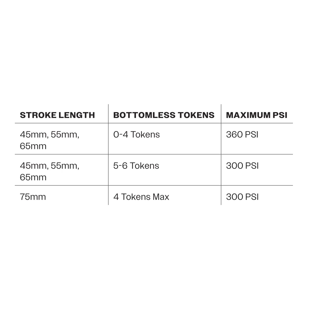 What sets the Vivid apart from a steel spring shock is the highly tunable air spring with DebonAir technology. Its higher volume not only gives a more linear, consistent feel, but also improves sensitivity to small shocks. The air suspension responds sensitively while providing mid-stroke support and comfortable resistance to potential bottoming out at the end of the stroke. Adding Bottomless Tokens can create more Bottom Out resistance, while removing it allows full use of the suspension travel.