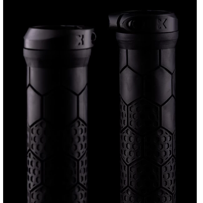 The Sixpack Z-Trix PA grips with an outer diameter of 28mm are the super slim offshoot of the World Cup-proven D-Trix. The honeycomb profile of Kraton gel with soft durometer absorbs hard impacts and directs them away from the palms, preventing arm pump. The thin profile does not distort the movements of the bike, so you enjoy maximum control. The structure ensures excellent anti-slip performance, even in wet conditions or when used without gloves. The single-sided Lock-On clamping on the inside of the grips guarantees a secure hold and prevents them from twisting or slipping.