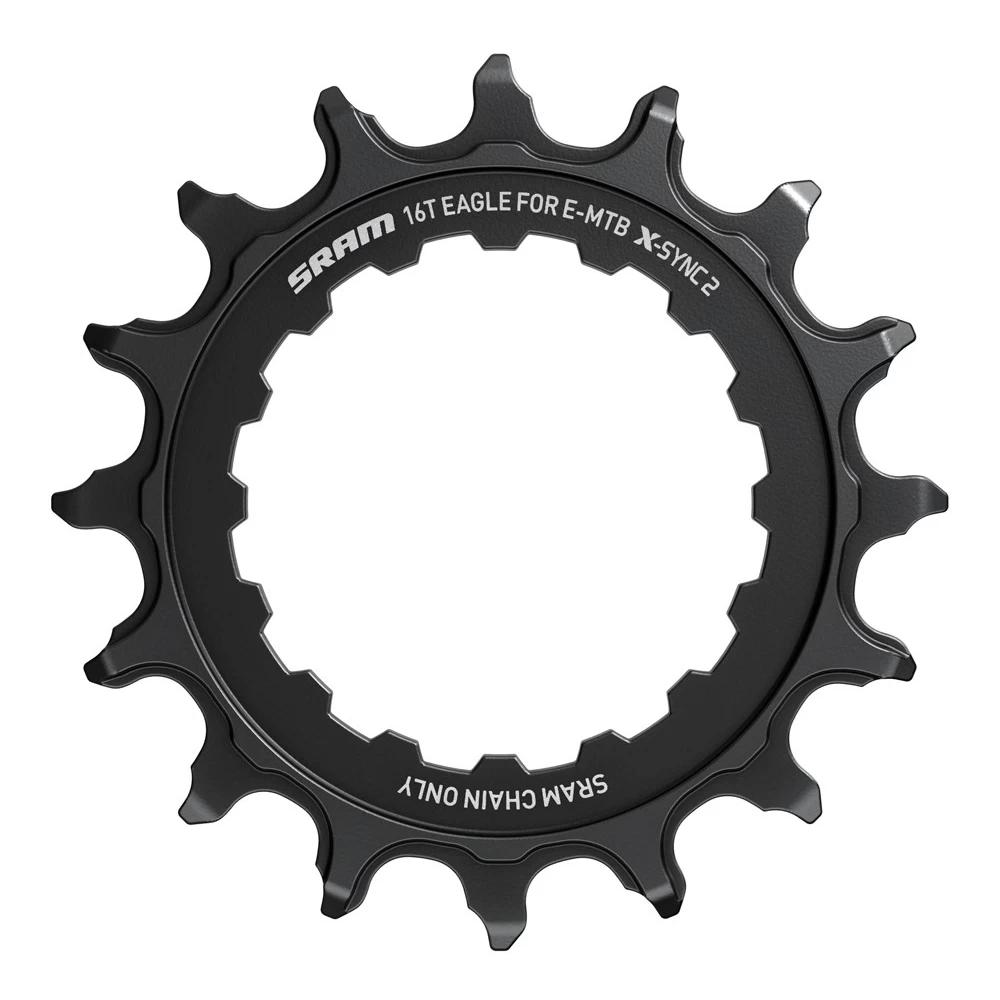Built with the needs of E-MTB riders in mind and incorporating the same X-SYNC 2 Eagle chain management technology which is integral component of every SRAM 1X drivetrain. A sharp and narrow teeth profile as well as rounded chamfer edges help manage a deflected chain while recesses offer mud-clearing properties.