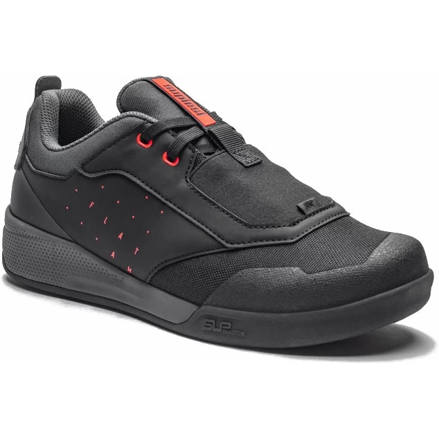 The FLAT PEDAL SPORT looks quite simple, but is full of technology. Starting with the bottom, Suplest uses the grippy “BEAR PAW 5” sole made from a SUPtraction® Flat rubber compound that provides premium grip on the pedal and off-road. The upper is a casual combination of synthetic microfiber, Rockprint toe guards, reinforced eyelets and a large elastic area to stow laces while riding.