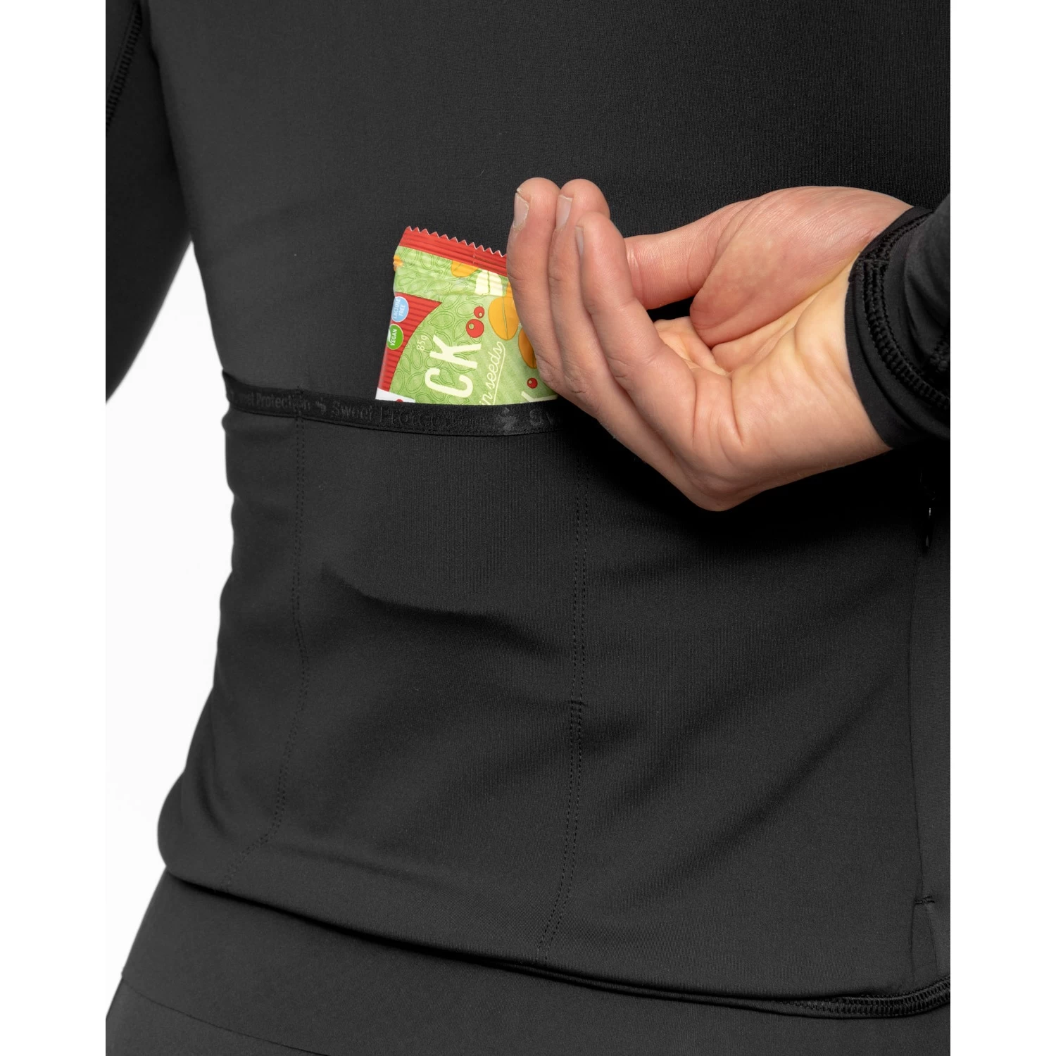 The jersey has recycled and soft brushed fabric on the inside for thermal and moisture measurements, three compartment pockets to store your belongings, and a safety pocket with a zipper for your valuable stuff.
