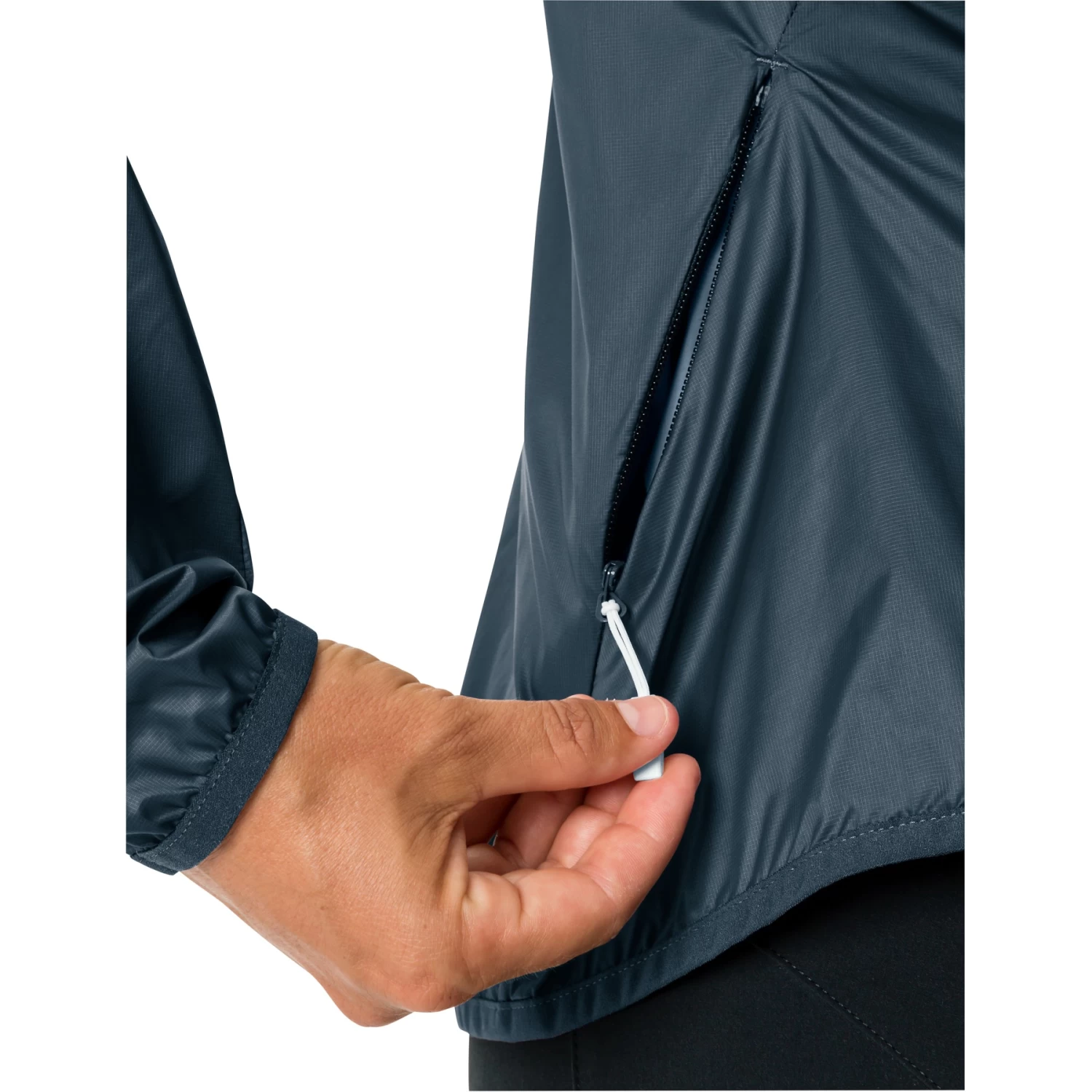 This material is particularly quick-drying. Pre-shaped sleeves, the elastic cuffs and the attached hood round off the comfort features. Small items can be stored in the left side pocket. This product is PFC-free with Eco Finish water repellent finish. The VAUDE Green Shape label stands for an environmentally friendly, functional product made from sustainable materials.